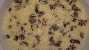 - Sprinkle the topping over the filling in the casserole dish.