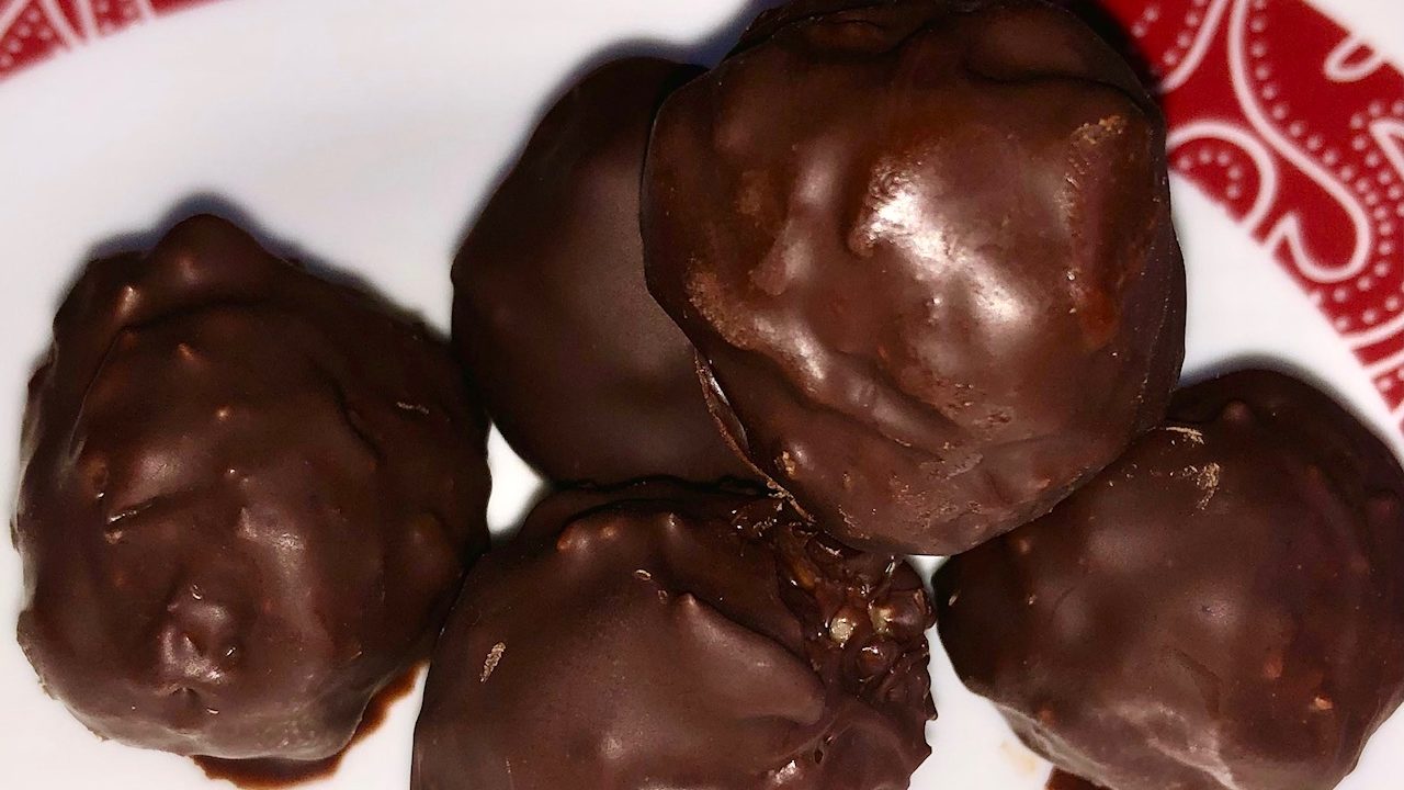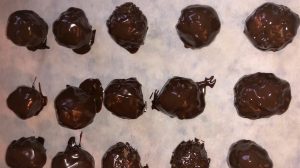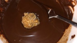 - Roll the formed balls in the chocolate one at a time with a fork.