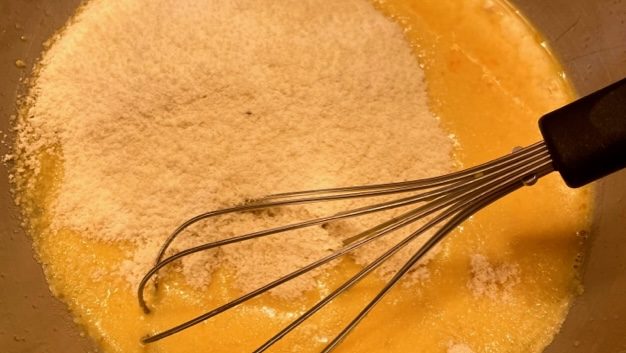 - Then add in the dry filling ingredients, and whisk again – The filling should be “wet”.