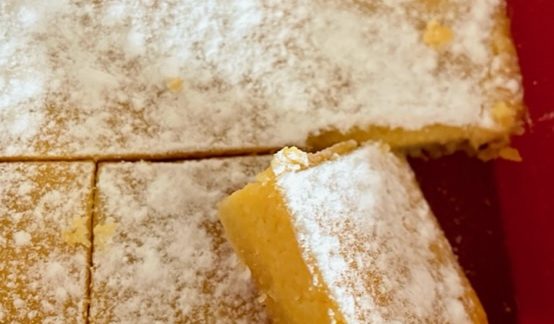 - Sift Powdered Erythritol over the top of the bars just before serving.