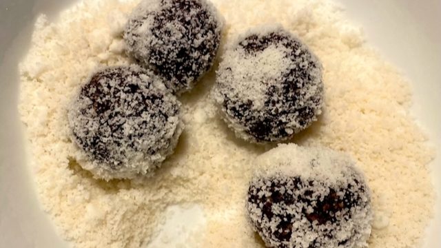 - Place the balls in the topping and ensure they are completely coated.